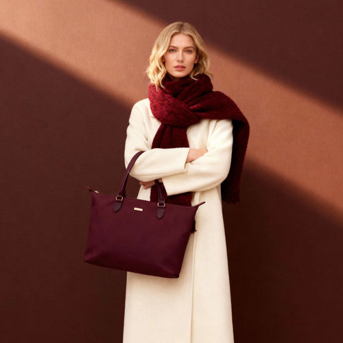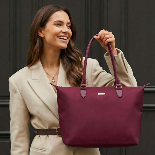 Unsere Nayla Handtasche vereint schlichte Eleganz mit praktischer Vielseitigkeit. Ihr modernes, minimalistisches Design in einem edlen Burgundy macht sie zu einem stilvollen Begleiter für jeden Tag. Das hochwertige Material überzeugt durch seine leichte, strapazierfähige Beschaffenheit und sorgt dafür, dass die Tasche nicht nur gut aussieht, sondern auch lange hält.