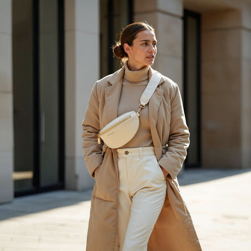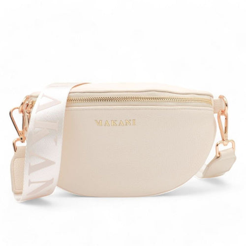 Die Chest Bag ist nicht nur ein aktueller Modetrend, sondern überzeugt zudem mit einem hohen praktischen Nutzen. In dem großen Hauptfach finden das Portemonnaie oder der Schlüssel einen sicheren Platz. Für kleinere Accessoires findet sich hier zudem ein weiteres, separates und kleines Fach. Natürlich kann die gesamte Bag mit einem Reißverschluss gesichert werden, um so alle Gegenstände sicher verstauen zu können. Eine Besonderheit stellt ein wechselbares Strapsystem dar. Mit diesem kann der Strap einfach getauscht werden, eine individuelle Anpassung ist somit einfach möglich. Bei der Produktion setzen wir auf hochwertige und widerstandsfähige Materialien. Das genutzte Leder ist vegan und überzeugt mit einer angenehmen Haptik. Das Leder, der prägnante MAKANI-Schriftzug an der Vorderseite und die messingfarbenen Elemente am Reißverschluss und der Strap sorgen für ein modernes Erscheinungsbild, so kann die Chest Bag hervorragend zu unterschiedlichen Outfits kombiniert werden.