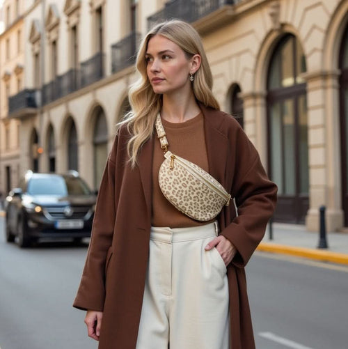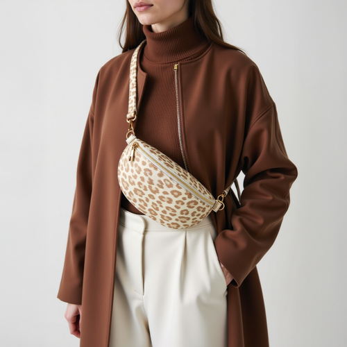 Die Chest Bag ist nicht nur ein aktueller Modetrend, sondern überzeugt zudem mit einem hohen praktischen Nutzen. In dem großen Hauptfach finden das Portemonnaie oder der Schlüssel einen sicheren Platz. Für kleinere Accessoires findet sich hier zudem ein weiteres, separates und kleines Fach. Natürlich kann die gesamte Bag mit einem Reißverschluss gesichert werden, um so alle Gegenstände sicher verstauen zu können. Eine Besonderheit stellt ein wechselbares Strapsystem dar. Mit diesem kann der Strap einfach getauscht werden, eine individuelle Anpassung ist somit einfach möglich. Bei der Produktion setzen wir auf hochwertige und widerstandsfähige Materialien. Das genutzte Leder ist vegan und überzeugt mit einer angenehmen Haptik. Das bedruckte Leder, der prägnante MAKANI-Schriftzug an der Vorderseite, die messingfarbenen Elemente am Reißverschluss und der Strap sorgen für ein modernes Erscheinungsbild, so kann die Chest Bag hervorragend zu unterschiedlichen Outfits kombiniert werden.