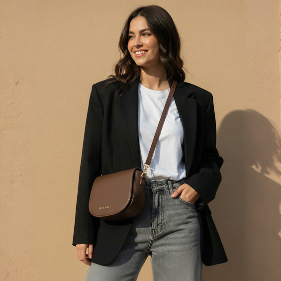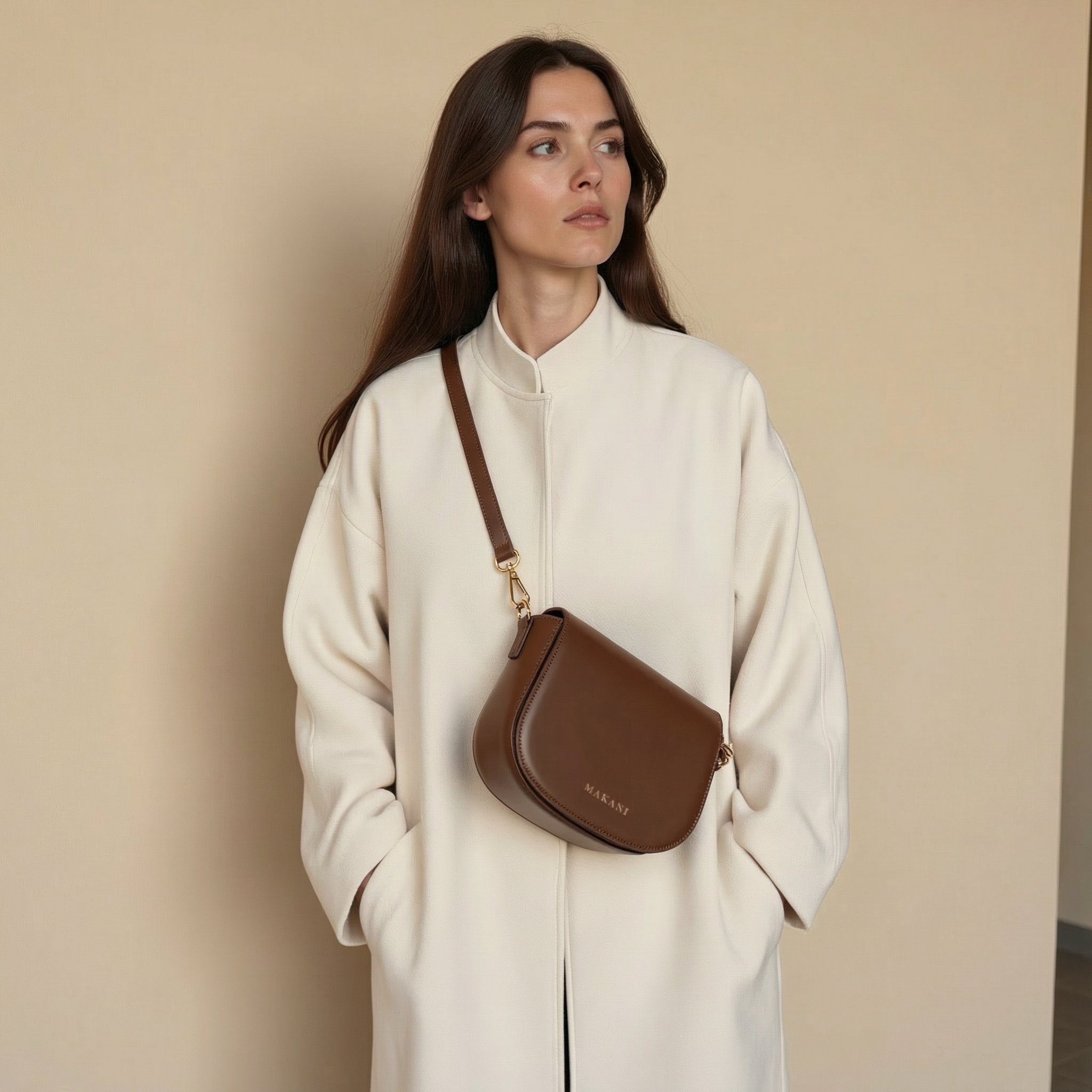 Die Halfmoon Bag, ein atemberaubender Mix aus Eleganz und Funktionalität, ist dein idealer Begleiter für jeden Anlass. Hergestellt aus 100% hochwertigem veganem PU Glattleder, kombiniert sie Nachhaltigkeit mit modischem Stil. Ihre goldenen Details aus Messing verleihen ihr einen Hauch von Luxus und Glanz.