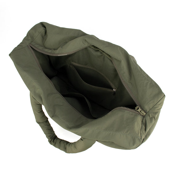 Die charakteristische Steppoptik verleiht der Tasche Volumen und Struktur, ohne auf Komfort zu verzichten: Das wattierte, vegane Material fühlt sich angenehm weich an, während die gepolsterten Henkel für müheloses Tragen sorgen – ob in der Hand oder über der Schulter.