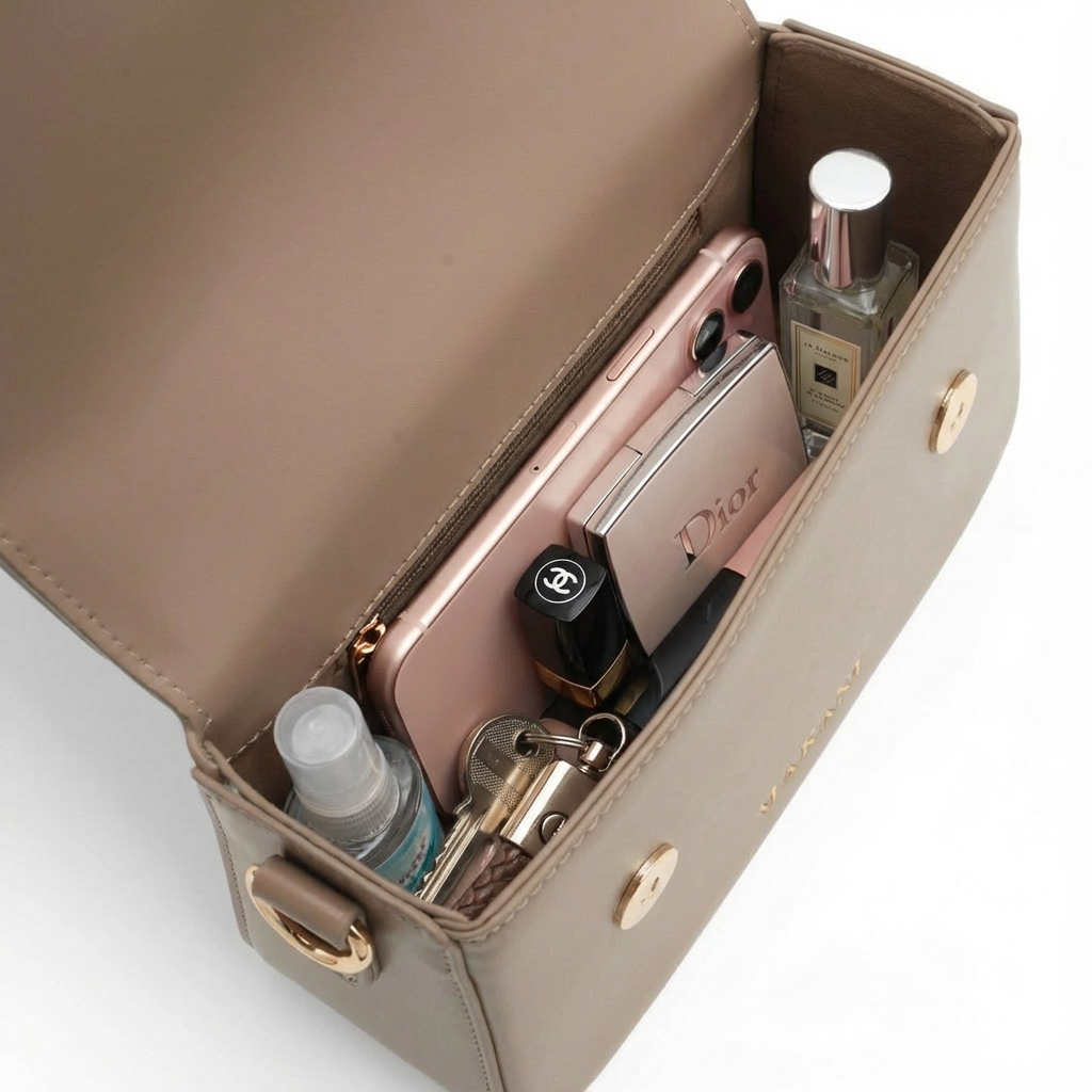 Die Nalua Handtasche kombiniert minimalistisches Design mit einer klaren Eleganz und ist ein zeitloser Klassiker in deiner Garderobe. Gefertigt aus hochwertigem, glattem PU-Leder, überzeugt sie mit ihrer schlichten Silhouette und goldfarbenen Details, die ihr einen luxuriösen Touch verleihen. Das dezente Beige macht die Nalua zu einem vielseitigen Accessoire, das sowohl im Alltag als auch zu besonderen Anlässen perfekt passt.