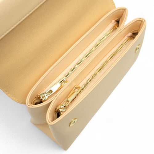 Die NANI Tasche von MAKANI vereint feminine Eleganz mit praktischer Funktionalität und ist ein Must-have für jede Garderobe. Gefertigt aus 100 % veganem, strukturierten PU-Leder überzeugt sie durch ihre hochwertige Haptik, während die goldfarbenen Messingdetails ihr einen luxuriösen Akzent verleihen.