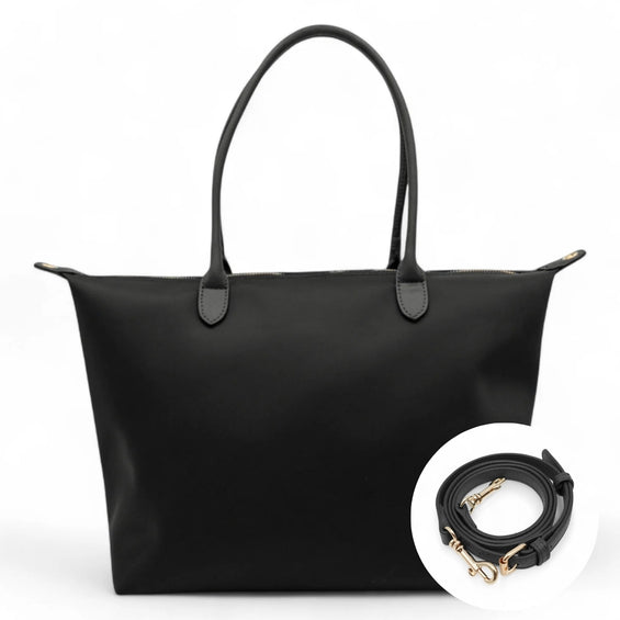 Mit ihren zwei Trageoptionen passt sich unsere Nayla perfekt deinem Alltag an: Die langen Henkel machen sie zur idealen Schultertasche, während der abnehmbare, längenverstellbare Schulterriemen dir die Freiheit gibt, sie auch als Crossbody-Tasche zu tragen. Der geräumige Innenraum mit Reißverschluss bietet Platz für all deine Essentials – ob Laptop, Bücher oder Alltagsgegenstände – und sorgt gleichzeitig für Ordnung.