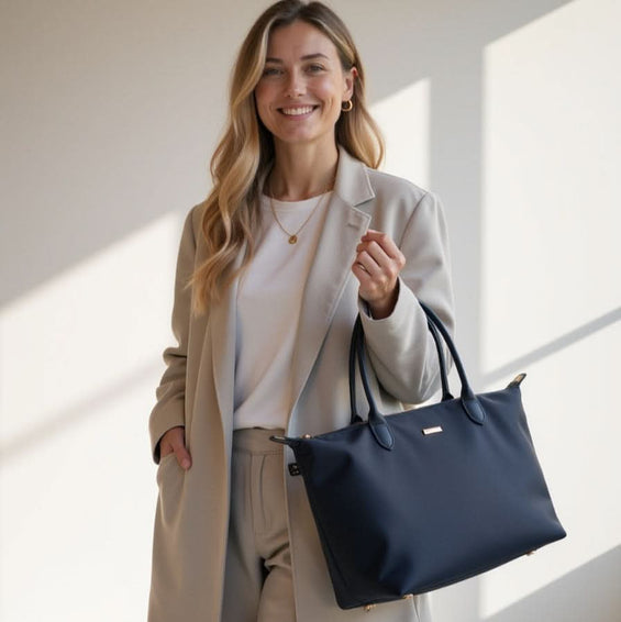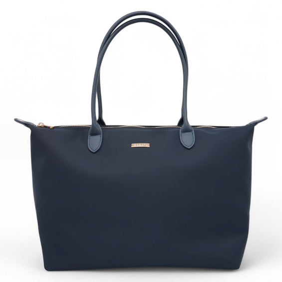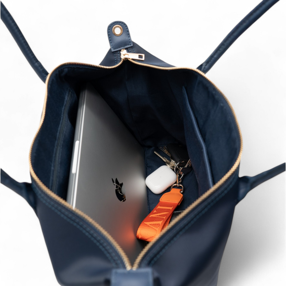 Unsere Nayla Handtasche vereint schlichte Eleganz mit praktischer Vielseitigkeit. Ihr modernes, minimalistisches Design in einem eleganten Navy Blue macht sie zu einem stilvollen Begleiter für jeden Tag. Das hochwertige Material überzeugt durch seine leichte, strapazierfähige Beschaffenheit und sorgt dafür, dass die Tasche nicht nur gut aussieht, sondern auch lange hält.