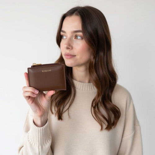 Klein, praktisch und richtig stylish – das Liam Wallet ist genau das, was du brauchst, wenn du Minimalismus und Eleganz liebst. Das hochwertige PU-Leder und das goldene Makani-Logo machen sie zu einem echten Hingucker, der sich perfekt in jede Handtasche schmiegt.