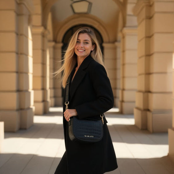 Die Halfmoon Bag, ein atemberaubender Mix aus Eleganz und Funktionalität, ist dein idealer Begleiter für jeden Anlass. Hergestellt aus 100% hochwertigem veganem PU Glattleder, kombiniert sie Nachhaltigkeit mit modischem Stil. Ihre goldenen Details aus Messing verleihen ihr einen Hauch von Luxus und Glanz.