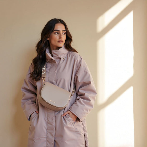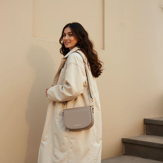 Die Halfmoon Bag, ein atemberaubender Mix aus Eleganz und Funktionalität, ist dein idealer Begleiter für jeden Anlass. Hergestellt aus 100% hochwertigem veganem PU Glattleder, kombiniert sie Nachhaltigkeit mit modischem Stil. Ihre goldenen Details aus Messing verleihen ihr einen Hauch von Luxus und Glanz.