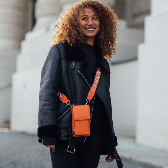Mit der praktischen Smartphone Bag lassen sich alle wichtigen Accessoires im eng am Körper tragen, sowohl im privaten als auch im beruflichen Umfeld überzeugen die attraktiven Vorteile. Veganes Glattleder vermittelt eine gute Haptik und erweist sich zudem als äußerst widerstandsfähig. In zwei Fächern kann nicht nur das Smartphone verstaut werden, auch die Schlüssel und weitere kleine Gegenstände lassen sich sicher unterbringen. Der stabile Reißverschluss am vorderen Fach verhindert einen schnellen unbefugten Zugriff, auch ein sicherer Verschluss ist also immer gewährleistet. Das Design ist modern und zeitlos, passt somit hervorragend zu zahlreichen Outfits. Ein wechselbares Strapsystem ermöglicht einen hohen Tragekomfort und eine individuelle Anpassung an den eigenen Geschmack gleichermaßen. Selbstverständlich kann der Tragegurt der Tasche ganz einfach in der Länge verstellt werden. Ein kräftiger Magnetverschluss sichert die Smartphone-Tasche zusätzlich.