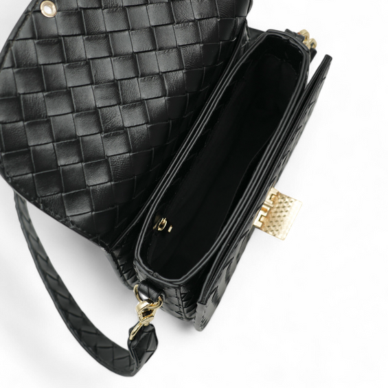 The Pualani handbag is the perfect companion for anyone who loves elegance and functionality. Made from high-quality PU leather, it features a braided design and elegant gold-colored details. The black color gives it a timeless appeal that can be effortlessly combined with any outfit - from casual to chic.