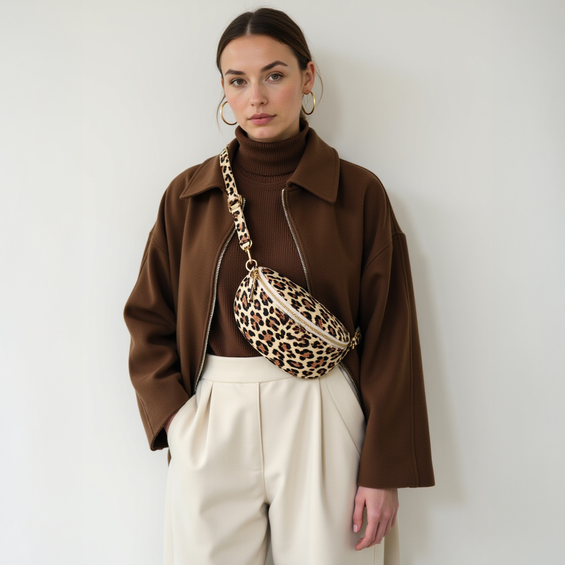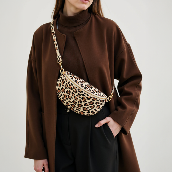 The Chest Bag is not only a current fashion trend, but also impresses with its practical benefits. The large main compartment provides a safe place for your wallet or keys. There is also a separate, small compartment for smaller Accessoires . Of course, the entire Bag can be secured with a zipper so that all items can be safely stowed away. A special feature is the interchangeable strap system. This allows the Strap to be easily exchanged, making it easy to customize. We use high-quality and durable materials in production. The leather used is vegan and has a pleasant feel. The printed leather, the striking MAKANI on the front, the brass-colored elements on the zipper and the Strap ensure a modern look, so the Chest Bag can be perfectly combined with different outfits.