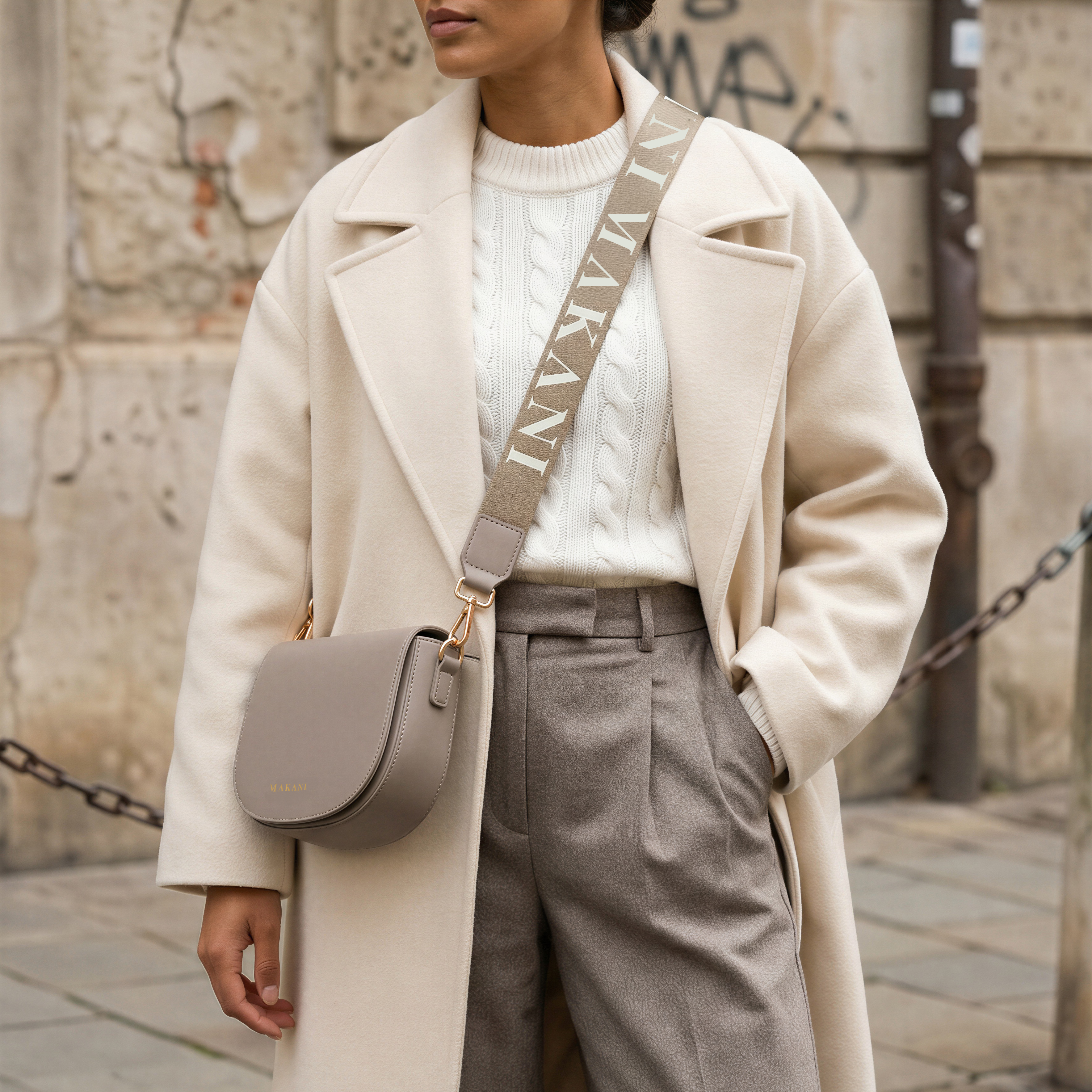 De Halfmoon Bag, een adembenemende mix van elegantie en functionaliteit, is je ideale metgezel voor elke gelegenheid. Hij is gemaakt van 100% hoogwaardig vegan PU gladleer en combineert duurzaamheid met een modieuze stijl. De gouden koperen details voegen een vleugje luxe en glamour toe.
