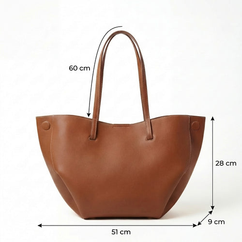 EMALIA ist eine zeitlose Tote Bag für Frauen, die minimalistisches Design und funktionale Eleganz schätzen. Mit ihrer klaren Silhouette und der strukturierten Form wirkt sie modern, selbstbewusst und gleichzeitig vielseitig kombinierbar. Die Tasche bietet großzügigen Stauraum für alles, was dich im Alltag begleitet. Von Essentials bis zu größeren Gegenständen und behält dabei stets ihre elegante Form. Die angenehm langen Henkel sorgen für hohen Tragekomfort, ob im Büro, in der Stadt oder auf Reisen. EMALIA vereint Qualität, Stil und Alltagstauglichkeit in einer modernen Damen Handtasche, die nicht Trends folgt, sondern bleibt.