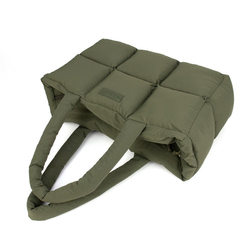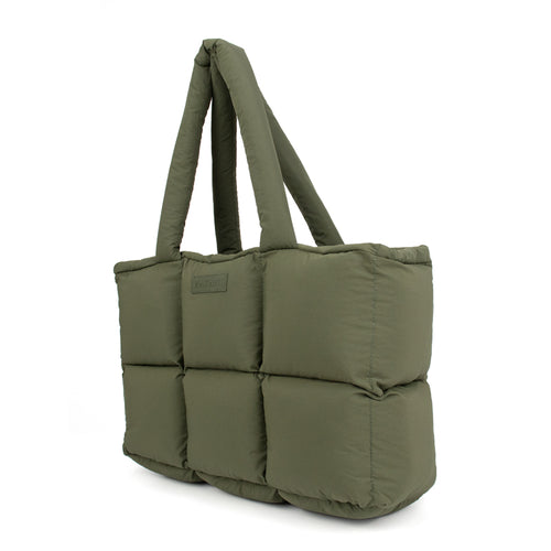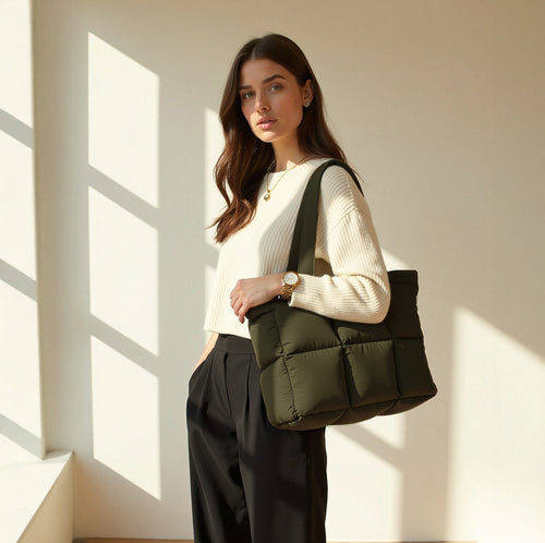 Die charakteristische Steppoptik verleiht der Tasche Volumen und Struktur, ohne auf Komfort zu verzichten: Das wattierte, vegane Material fühlt sich angenehm weich an, während die gepolsterten Henkel für müheloses Tragen sorgen – ob in der Hand oder über der Schulter.