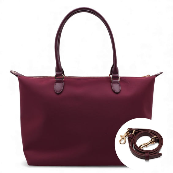 Mit ihren zwei Trageoptionen passt sich unsere Nayla perfekt deinem Alltag an: Die langen Henkel mit Messingringen machen sie zur idealen Schultertasche, während der abnehmbare, längenverstellbare Schulterriemen dir die Freiheit gibt, sie auch als Crossbody-Tasche zu tragen. Der geräumige Innenraum mit Reißverschluss bietet Platz für all deine Essentials – ob Laptop, Bücher oder Alltagsgegenstände – und sorgt gleichzeitig für Ordnung.