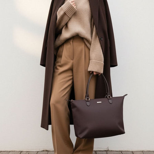 Unsere Nayla Handtasche vereint schlichte Eleganz mit praktischer Vielseitigkeit. Ihr modernes, minimalistisches Design in einem dezenten dunkelen braun macht sie zu einem stilvollen Begleiter für jeden Tag. Das hochwertige Material überzeugt durch seine leichte, strapazierfähige Beschaffenheit und sorgt dafür, dass die Tasche nicht nur gut aussieht, sondern auch lange hält.