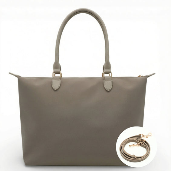 Mit ihren zwei Trageoptionen passt sich unsere Nayla perfekt deinem Alltag an: Die langen Henkel machen sie zur idealen Schultertasche, während der abnehmbare, längenverstellbare Schulterriemen dir die Freiheit gibt, sie auch als Crossbody-Tasche zu tragen. Der geräumige Innenraum mit Reißverschluss bietet Platz für all deine Essentials – ob Laptop, Bücher oder Alltagsgegenstände – und sorgt gleichzeitig für Ordnung.